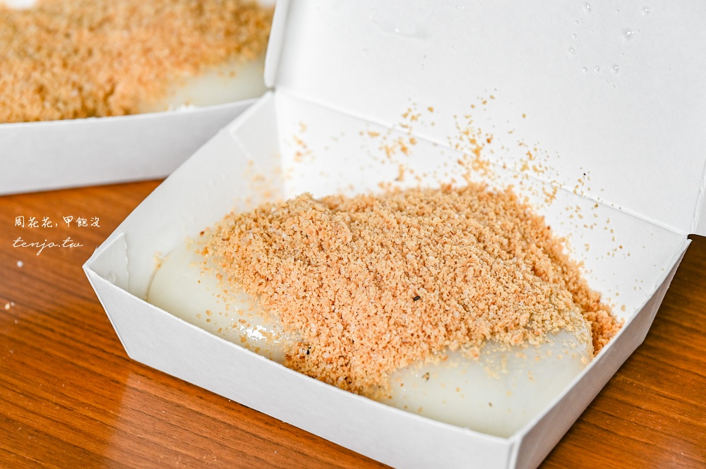 包餡麻糬共有花生、芝麻、紅豆三種口味,可以任選兩種口味做組搭,點不同口味也是OK的